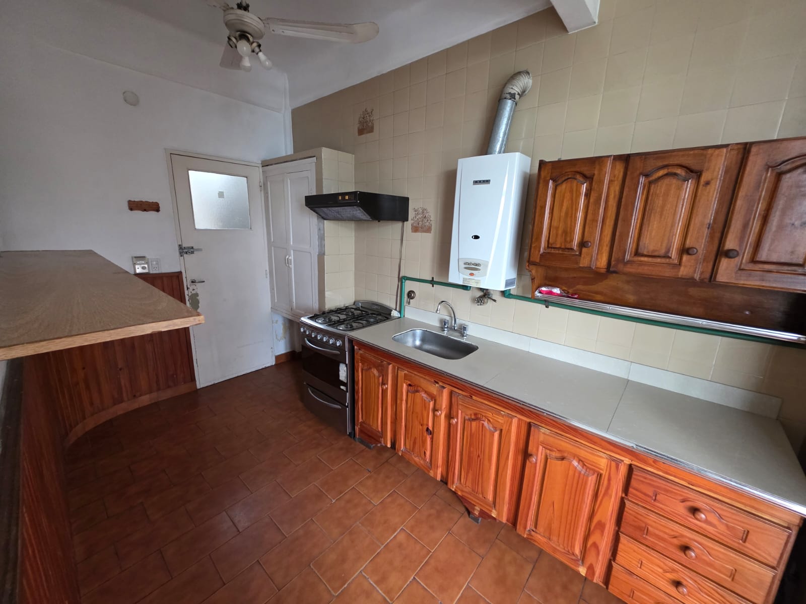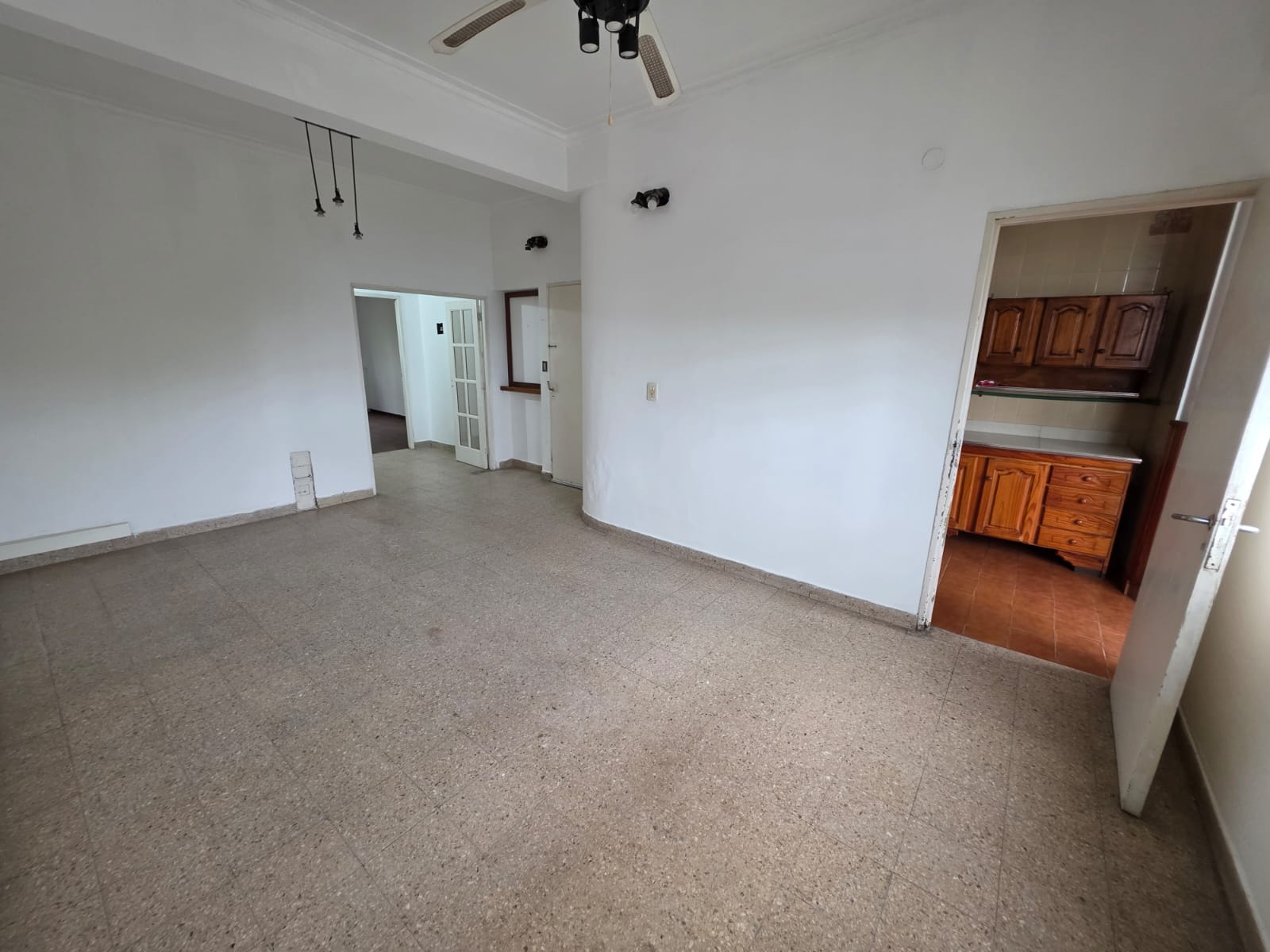 Departamento de dos habitaciones y una de servicio con baño completo lavadero cocina y living - comedor con balcón.