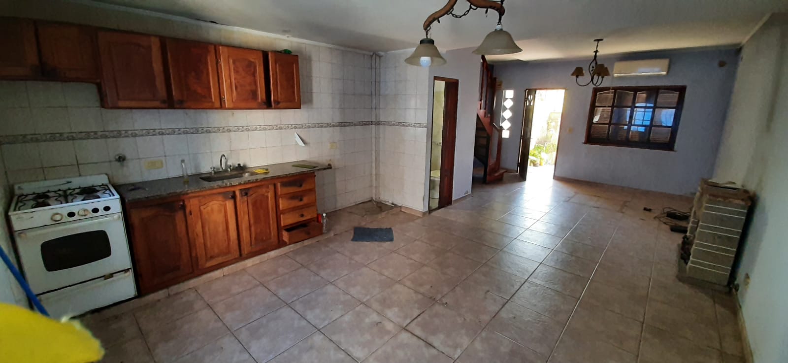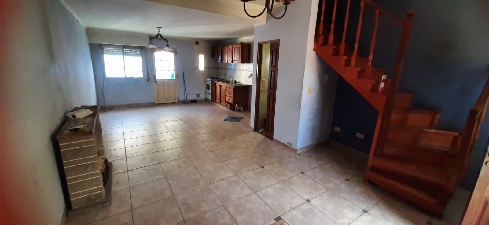 Departamento de un dormitorio con un baño principal arriba. Abajo tiene una cocina-comedor, baño de servicio , patio y entrada de auto